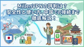 配信MillenVPNの評判は?安全性と使い方、中国での接続まで徹底解説! 「海外限定の推しのドラマをリアタイしたい」「中国への渡航先でもLINEを使いたい」——でも、どのVPNを選べば安全なのか迷っていませんか?そこでおすすめなのが、日本企業が運営する「MillenVPN(ミレンVPN)」です。みお完全日本語対応... 2026.02.22配信