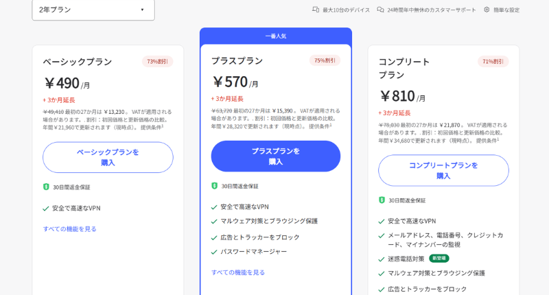 | プラス | 月額570円 | 30日間 | 広告ブロックなど、さらに安全にネットを使いたい人 |