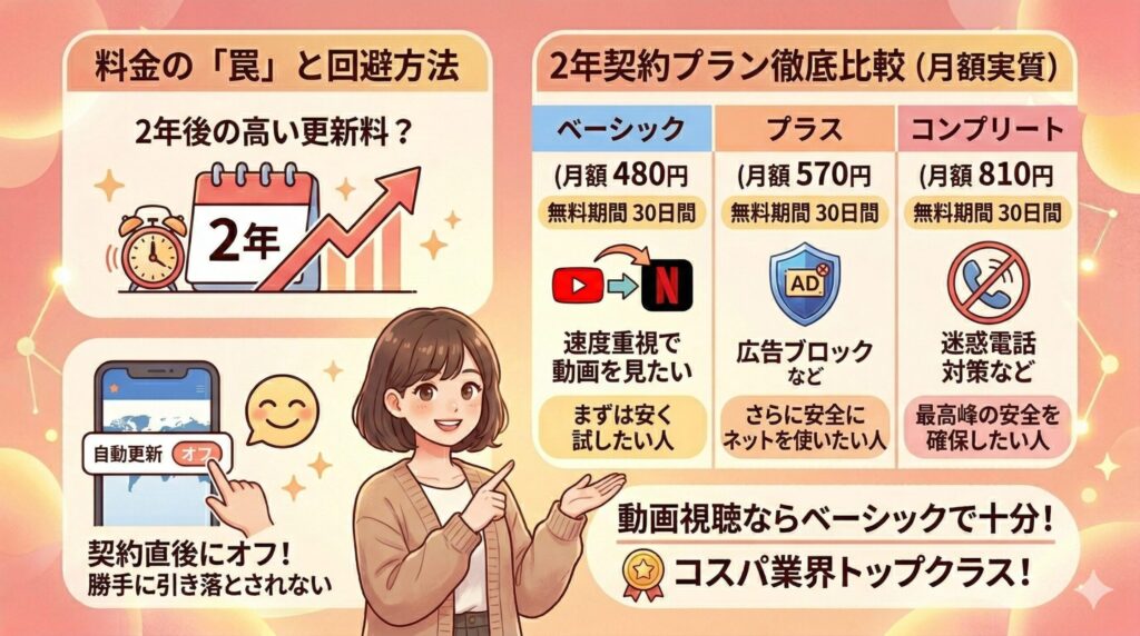 2年後の更新料金が高くなる「罠」は、契約後すぐに自動更新をオフにすれば完全に防げます。
