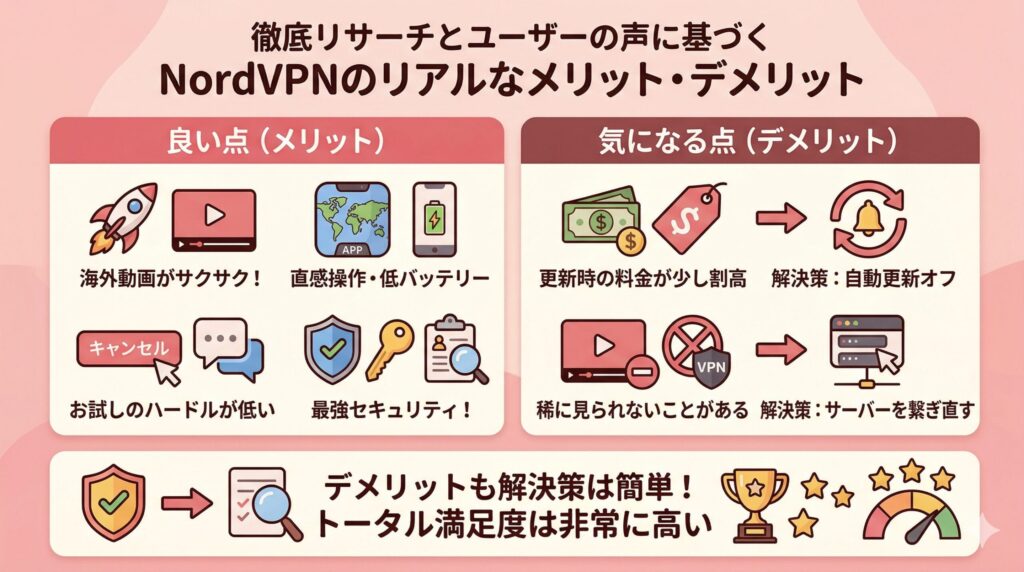 徹底的なリサーチと実際のユーザーの声を分析してわかった、リアルなメリットとデメリットを包み隠さずお伝えしますね。